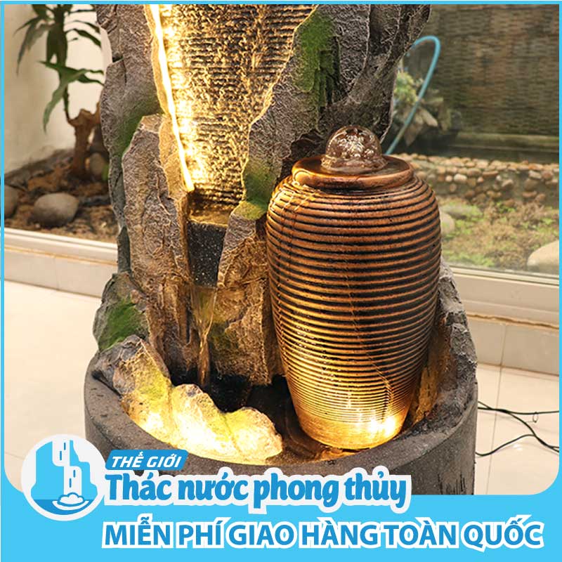 Bên cạnh thác nước là một chum nước chứa viên ngọc xoay tròn liên tục theo dòng nước tràn ra từ chiếc chum. Trong phong thuỷ, Ngọc có một vai trò quan trọng đặc biệt trong việc trấn yểm và gia tăng vượng khí cho mỗi người trong gia đình cũng như ngôi nhà của bạn.