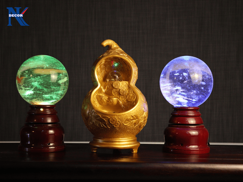Kết hợp với dòng nước luân chuyển không ngừng, quả cầu quay nhẹ và được nhấn nhá bằng 10.000 lạng vàng được đặt trên thác nước, kèm theo bộ phun hóa lỏng nước thành sương sẽ giúp tạo sinh khí tốt và tái tạo năng lượng tích cực, thu hút tài lộc.