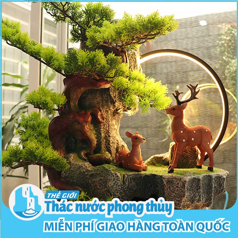 Thác Nước Tiểu Cảnh Phong Thuỷ Song Hươu Bên Suối Tn03-304